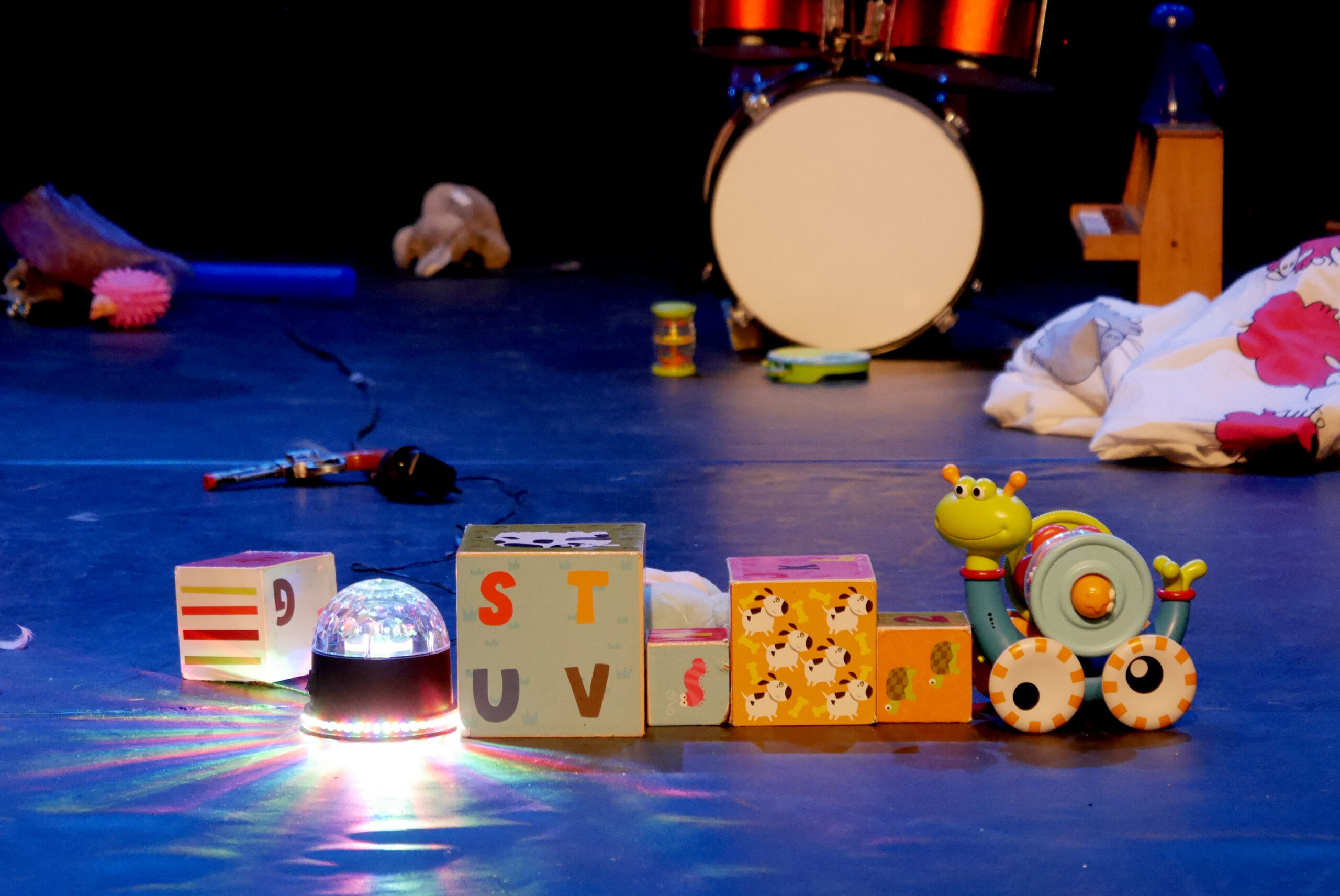 Sur le chemin d’un désordre apparent, du carillon à la boîte à musique, du piano jouet à la pieuvre musicale, deux adultes retrouvent la liberté d’inventer ; construisent, rêvent, entre le lit, les peluches et le coffre à jouets.