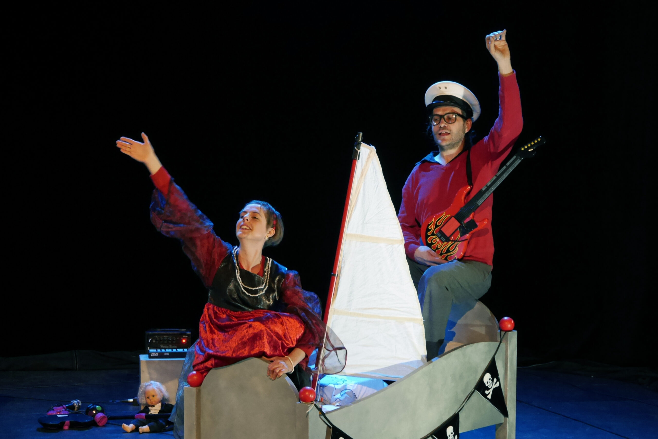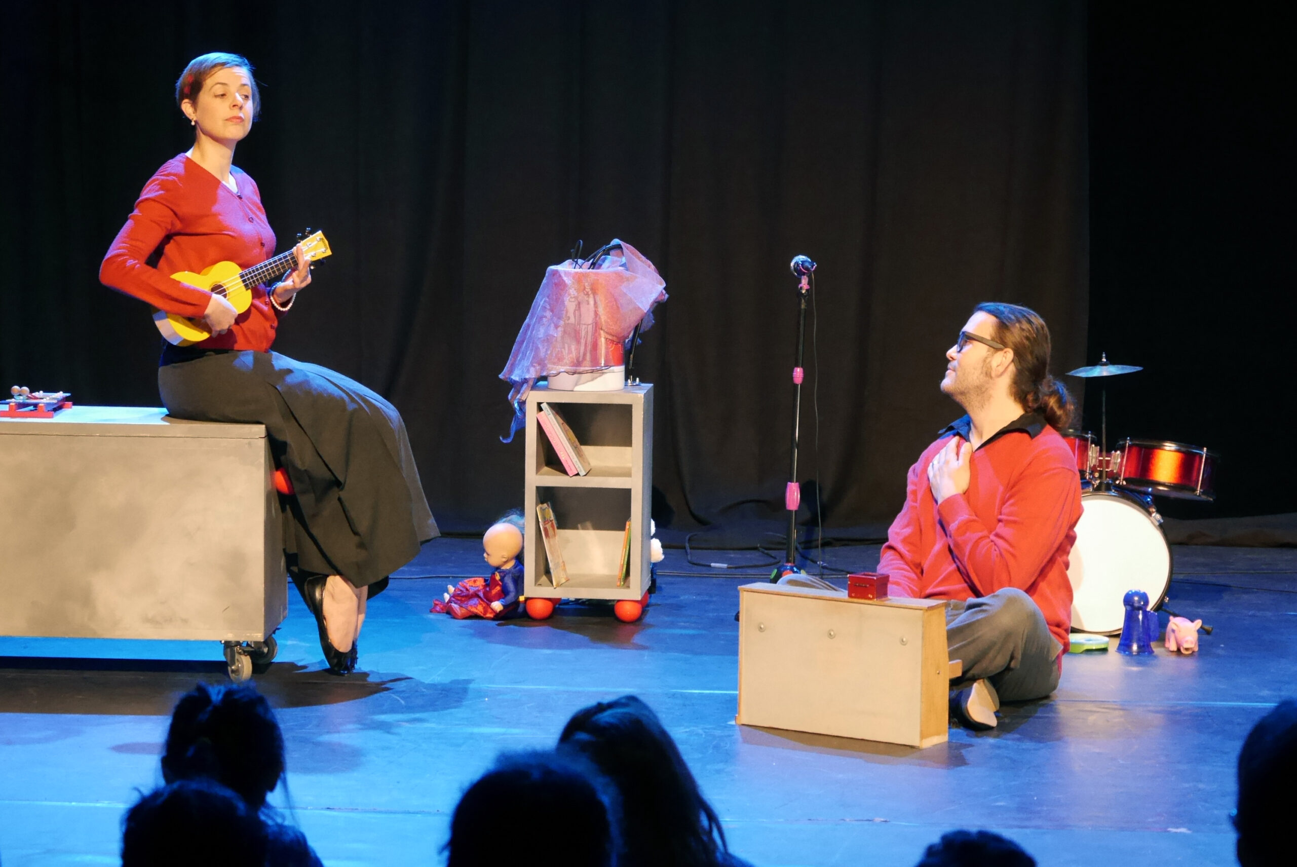 Jeu : Alix Arbet (Chants Ukulélé, flûte à coulisse, pieuvre musicale et autre jouets…) & Florian Genilleau (Chants, guitare électrique, piano jouet et pouët en tous genre)
